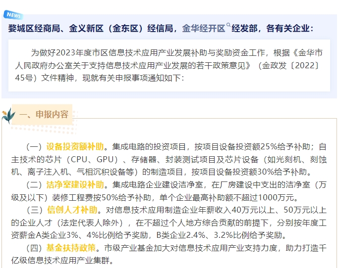 婺城區(qū)經(jīng)商局、金義新區(qū)(金東區(qū))經(jīng)信局,金華經(jīng)開(kāi)區(qū)經(jīng)發(fā)部,各有關(guān)企業(yè): 為做好2023年度市區(qū)信息技術(shù)應(yīng)用產(chǎn)業(yè)發(fā)展補(bǔ)助與獎(jiǎng)勵(lì)資金工作,根據(jù)《金華市人...