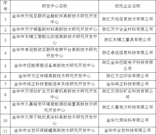 根據(jù)《金華市高新技術研究開發(fā)中心管理辦法》(金市科字〔2009〕23號),經(jīng)研究,同意浙江天悅信息技術有限公司等41家企業(yè)組建市級高新技術研究開發(fā)中心。