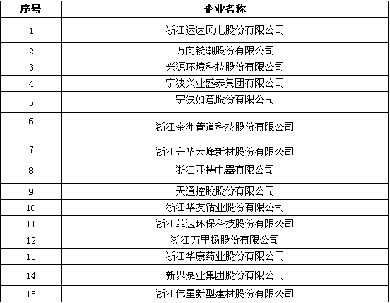 根據(jù)《浙江省技術(shù)創(chuàng)新示范企業(yè)認(rèn)定培育實(shí)施方案(2016-2018年)》《關(guān)于組織申報(bào)2017年浙江省技術(shù)創(chuàng)新示范企業(yè)和第二批優(yōu)秀工業(yè)新產(chǎn)品(新技術(shù))的通知》(浙經(jīng)信技術(shù)〔2017〕206號(hào)),經(jīng)各地推薦、審查,省經(jīng)信委和省財(cái)政廳確定萬(wàn)向錢(qián)潮股份有限公司等15家企業(yè)為2017年擬認(rèn)定浙江省技術(shù)創(chuàng)新示范企業(yè)(附件),現(xiàn)予以公示。