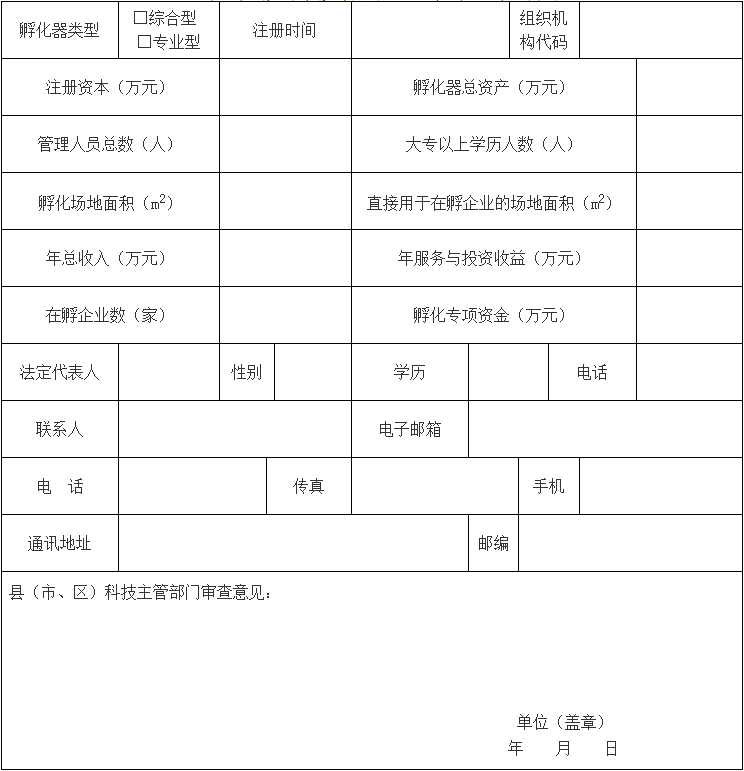 (一)各地科技主管部門要按照“省級以上高新區(qū)國家級科技企業(yè)孵化器(備案眾創(chuàng)空間)全覆蓋、各市、縣(市、區(qū))市級、省級科技企業(yè)孵化器(備案眾創(chuàng)空間)全覆蓋”的要求,加強科技孵化器的培育指導,認真做好審核把關和推薦工作。
