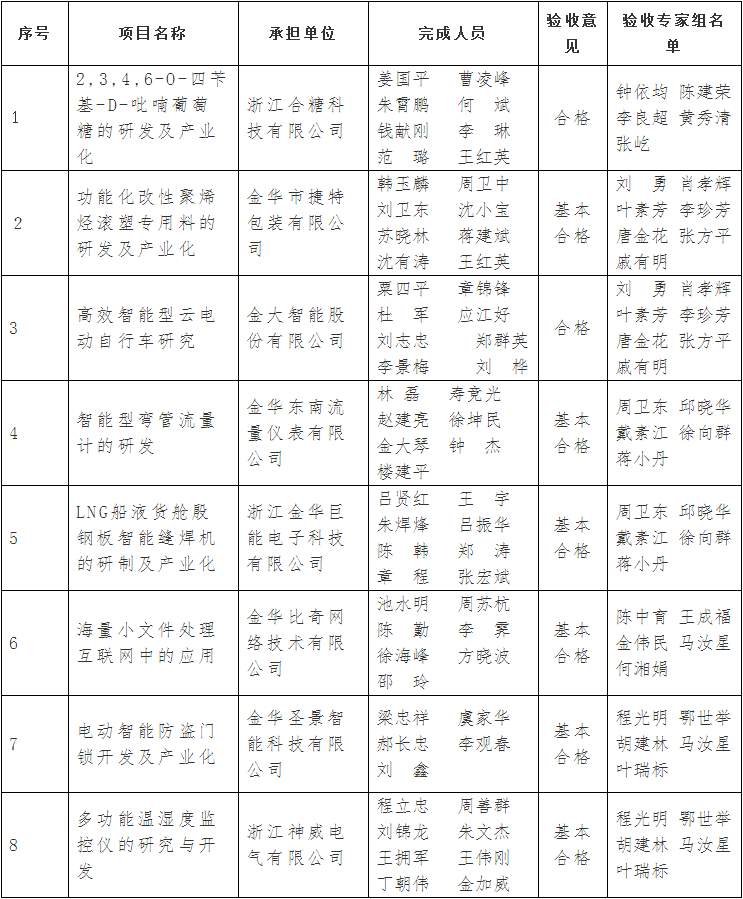 金華市級科技計劃項目驗收結(jié)果公示清單