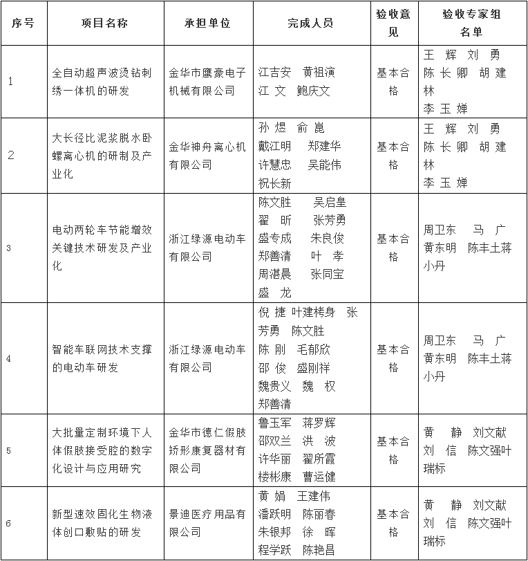 金華市級科技計(jì)劃項(xiàng)目驗(yàn)收結(jié)果公示清單