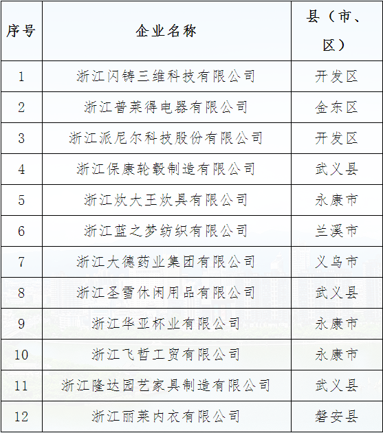 現(xiàn)將金華市第四批“三名”培育試點企業(yè)名單(見附件)予以公示,征求社會各界意見。