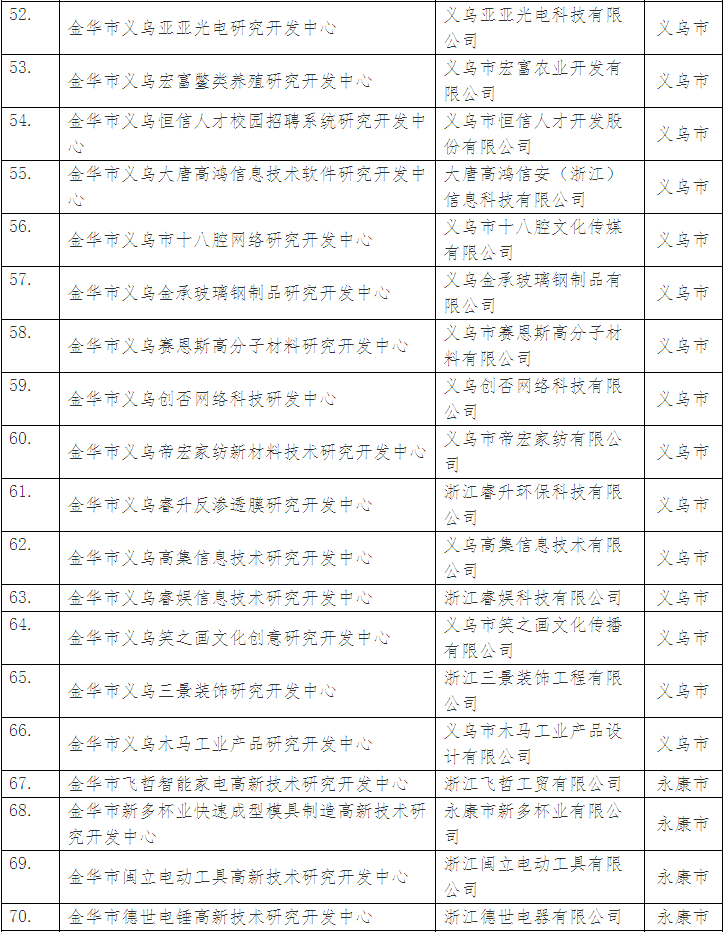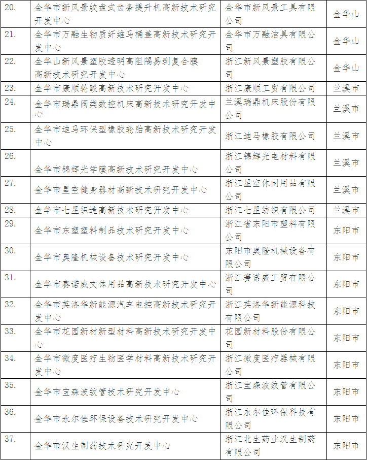 擬組建金華市高新技術(shù)研究開發(fā)中心名單