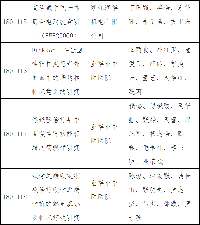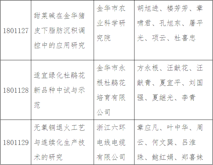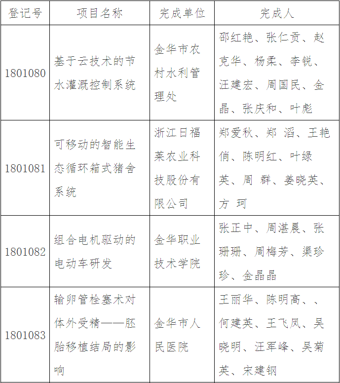 第三十五批金華市科技成果登記名單