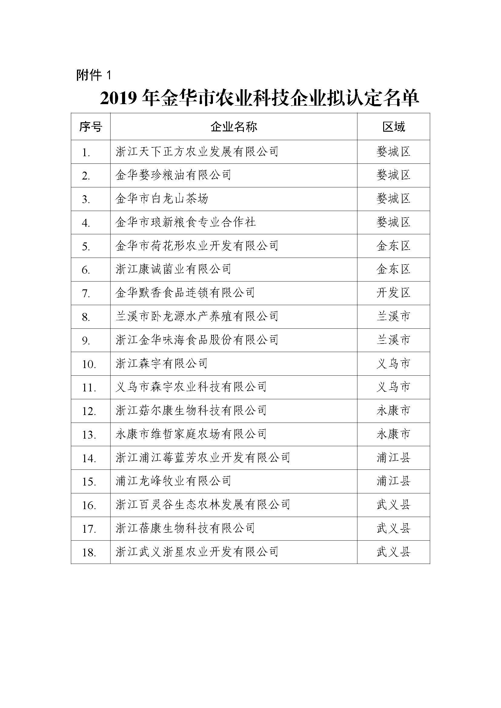 附件:1. 2019年金華市農業(yè)科技企業(yè)擬認定名單