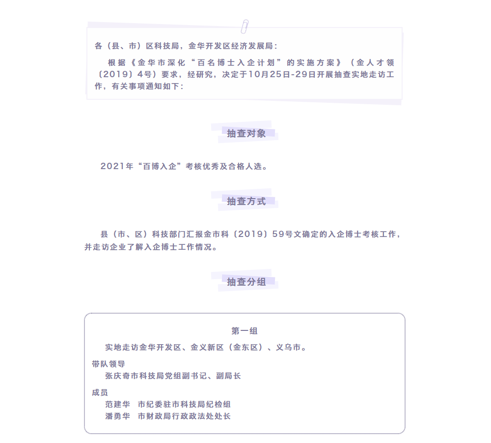 金華市科學(xué)技術(shù)局 關(guān)于開展2021年“百博入企”年度考核抽查走訪工作的通知