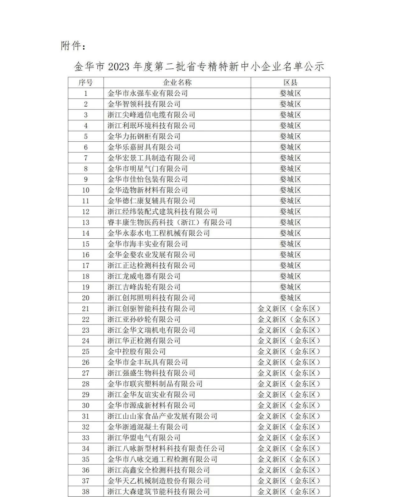 附件:金華市2023年度第二批省專精特新中小企業(yè)名單公示